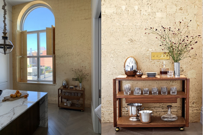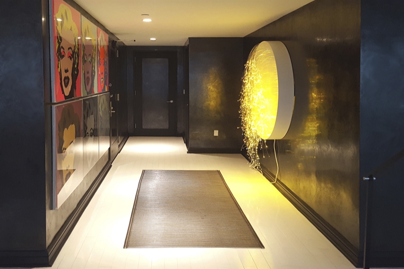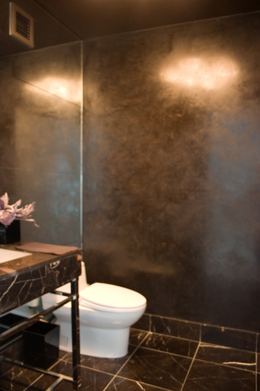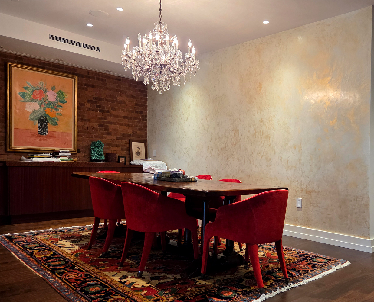 Venetian Grasselo Lime Plaster with gold patina. Private residence, New York City