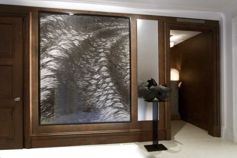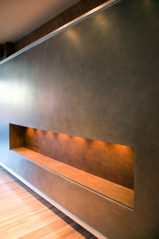 Venetian Plaster, Silver-Leaf frame, Painted faux rust niche. Private residence, New York City