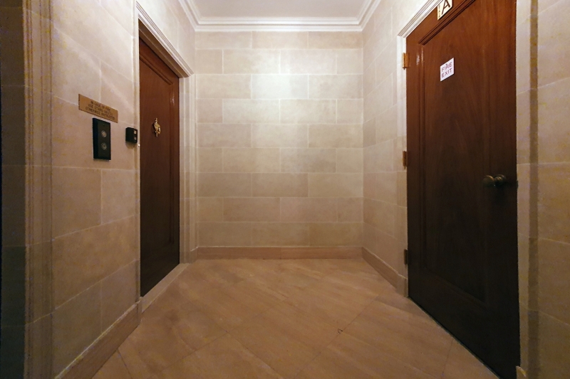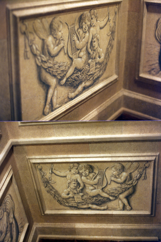 Trompe l'œil grisaille;. Elevator in private residence, New York City